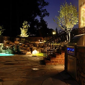 Landscape architecture services included design and construction management for a seven acre property located adjacent to the Gunpowder Valley State Park. The property features a semi circular driveway addition lined with a cobblestone paver border; a new bluestone and brick front walkway system; renovation of an existing raised patio terrace; new patio terraces with built in grilling and bar kitchen areas; a stone outdoor fireplace; a plunge pool with an integrated waterfall; hot tub patio, custom wrought iron railings and garden trellises; landscape lighting to illuminate pathways, patios and specimen trees and a naturalistic style garden setting.